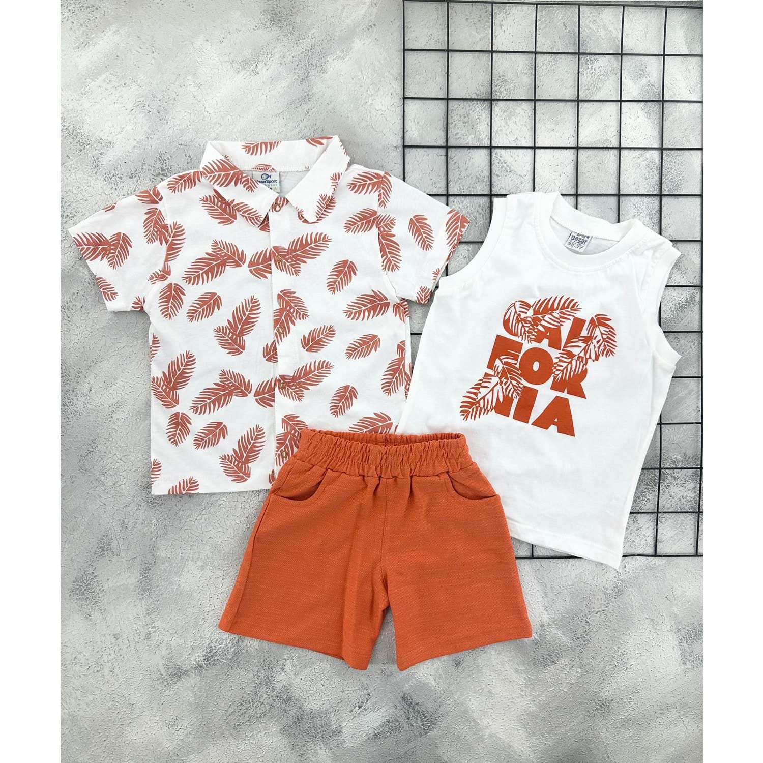 NAZAR 26523 YAPRAK BASKILI ŞORT TAKIM - TURUNCU - 5 YAŞ