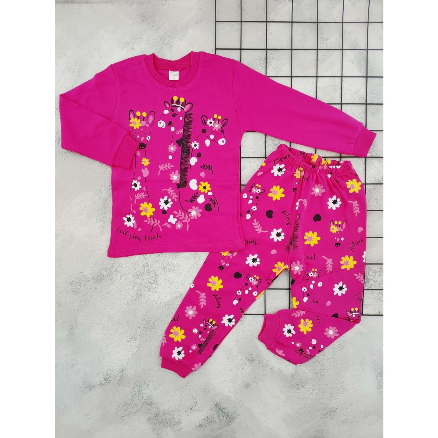BEBEMER 0101 ZÜRAFA BASKILI PİJAMA TAKIM - FUŞYA - 5 YAŞ
