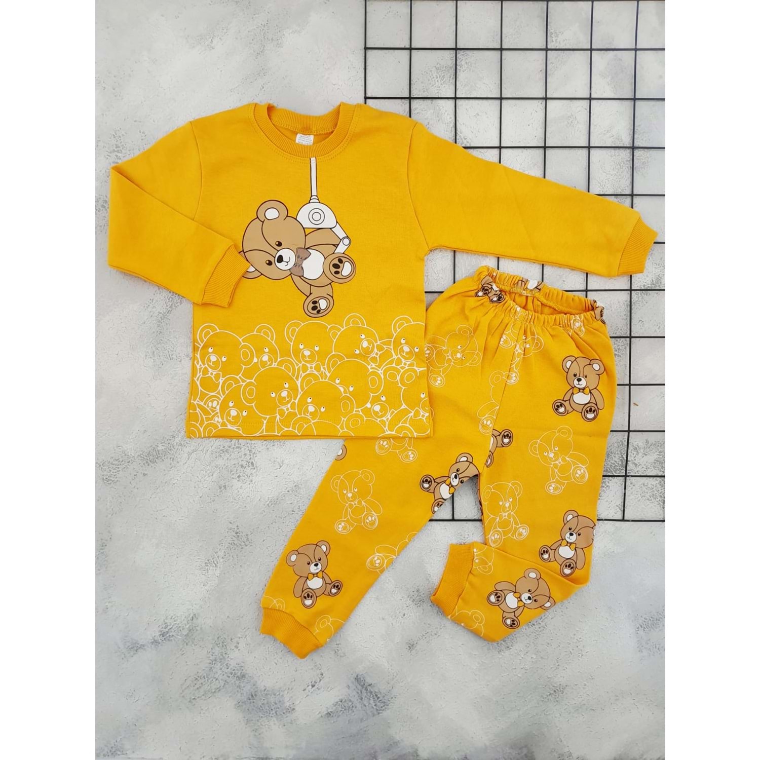 BEBEMER 0107 AYICIK BASKILI PİJAMA TAKIM - TURUNCU - 1 YAŞ