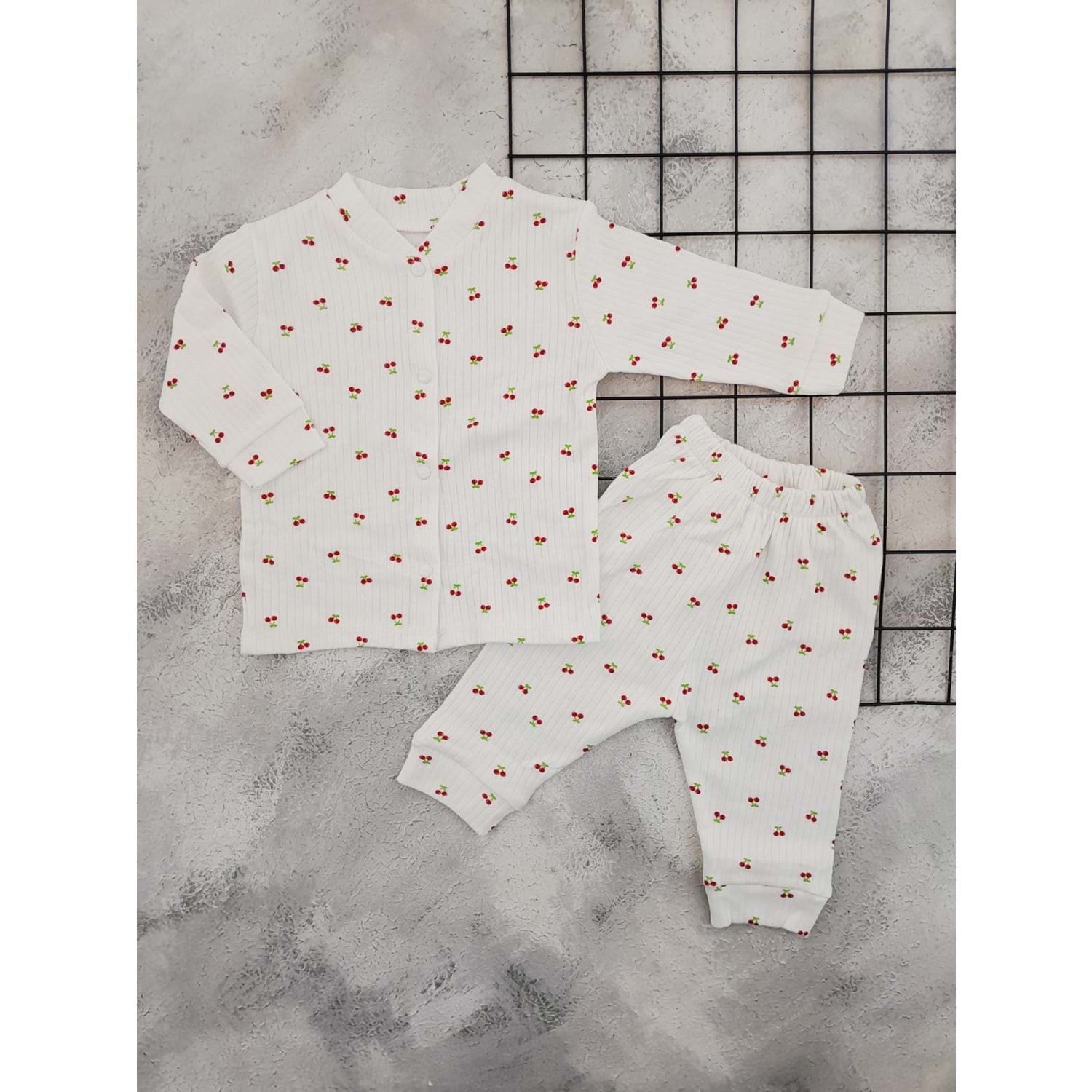BEBEMER 0115 KİRAZ BASKILI PİJAMA TAKIM - BEYAZ - 12 AY
