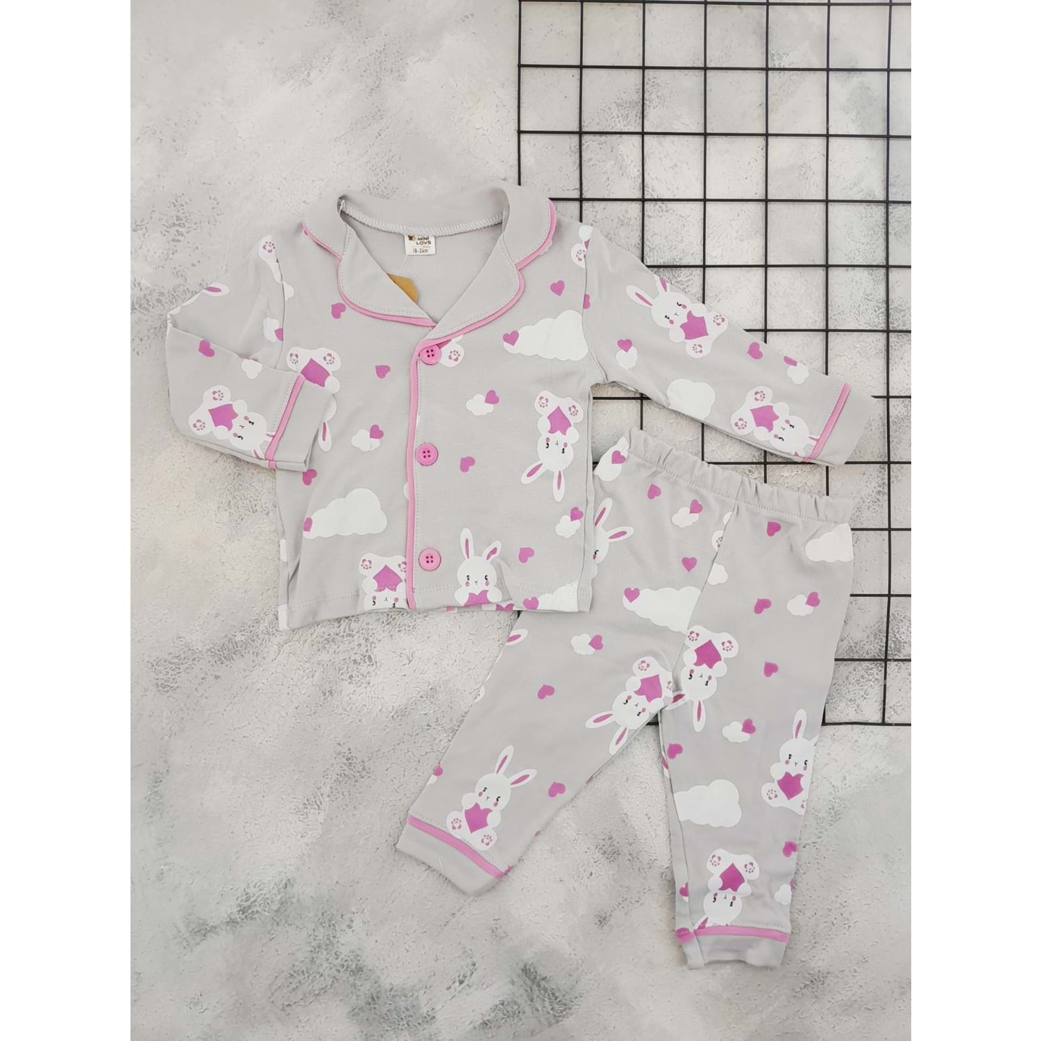 MİNİLOVE 8225 TAVŞAN BASKILI PİJAMA TAKIM - GRİ - 9-12 AY