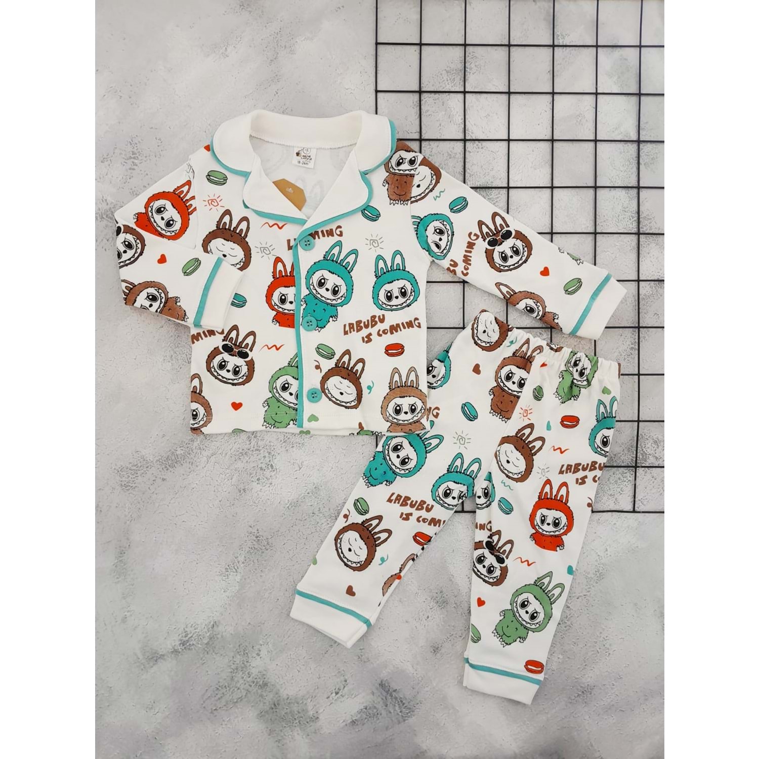 MİNİLOVE 8259 LABUBU BASKILI MEVSİMLİK TAKIM - YEŞİL - 9-12 AY