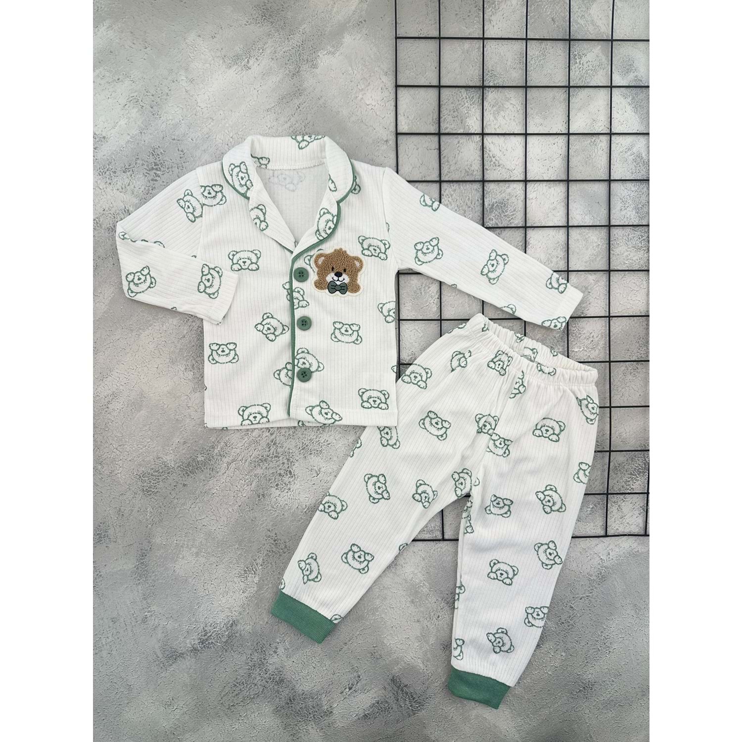 POLİFON 4027 SÜZENE AYICIK PİJAMA TAKIM - YEŞİL - 4 YAŞ