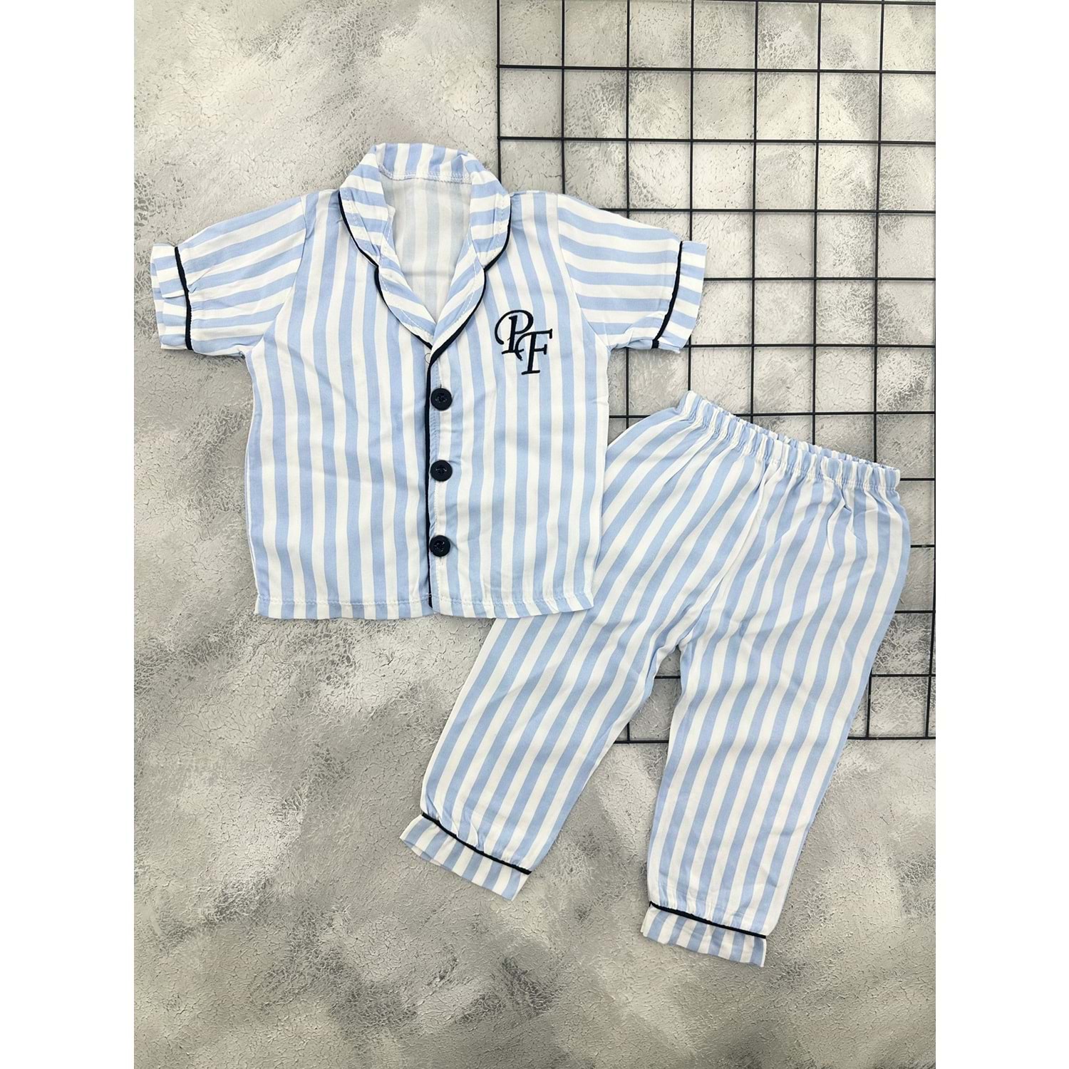 POLİFON 4065 ÇİZGİLİ KISA KOL MAVİ PİJAMA TAKIM - 4 YAŞ