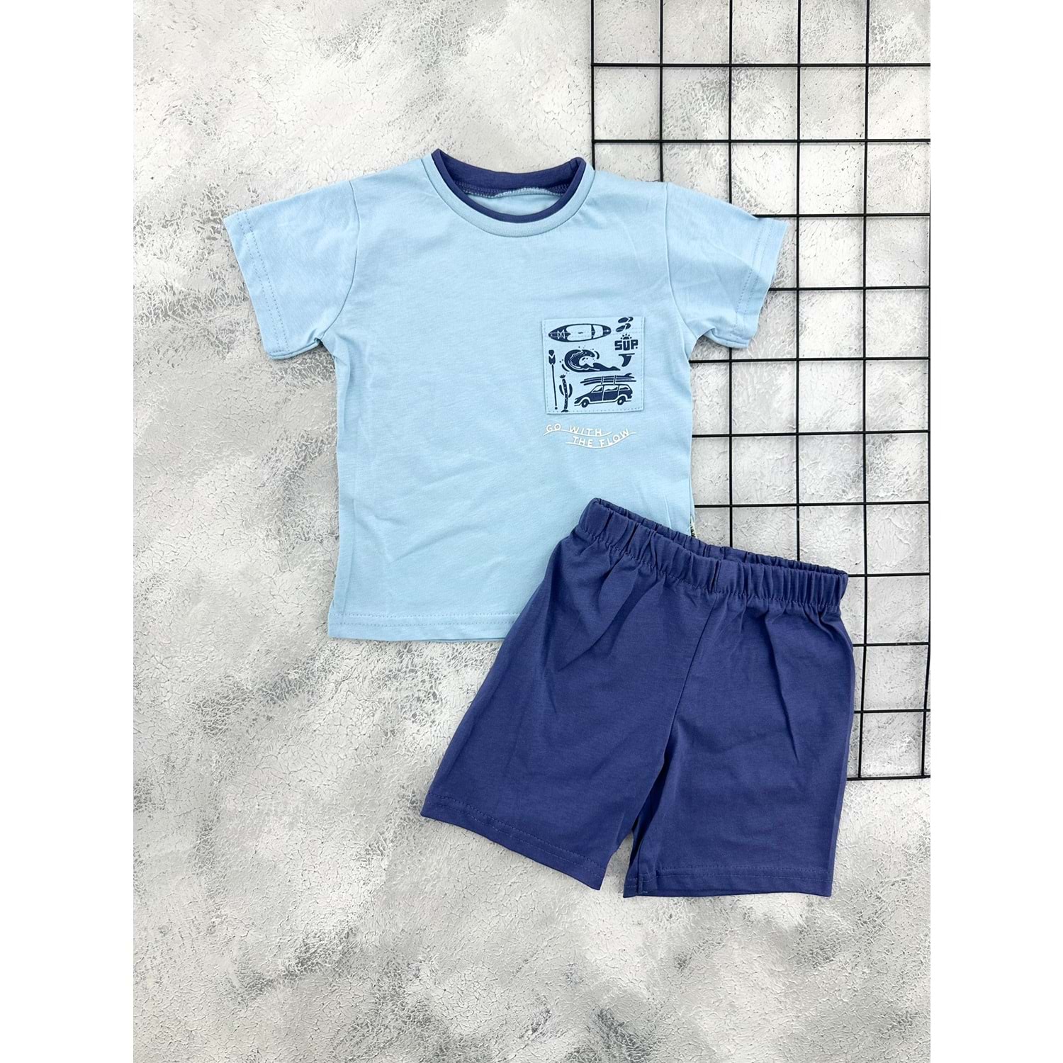 BAMBU 61404 GO WİTH YAZILI ŞORT TAKIM (1-4 YAŞ) - MAVİ - 3 YAŞ