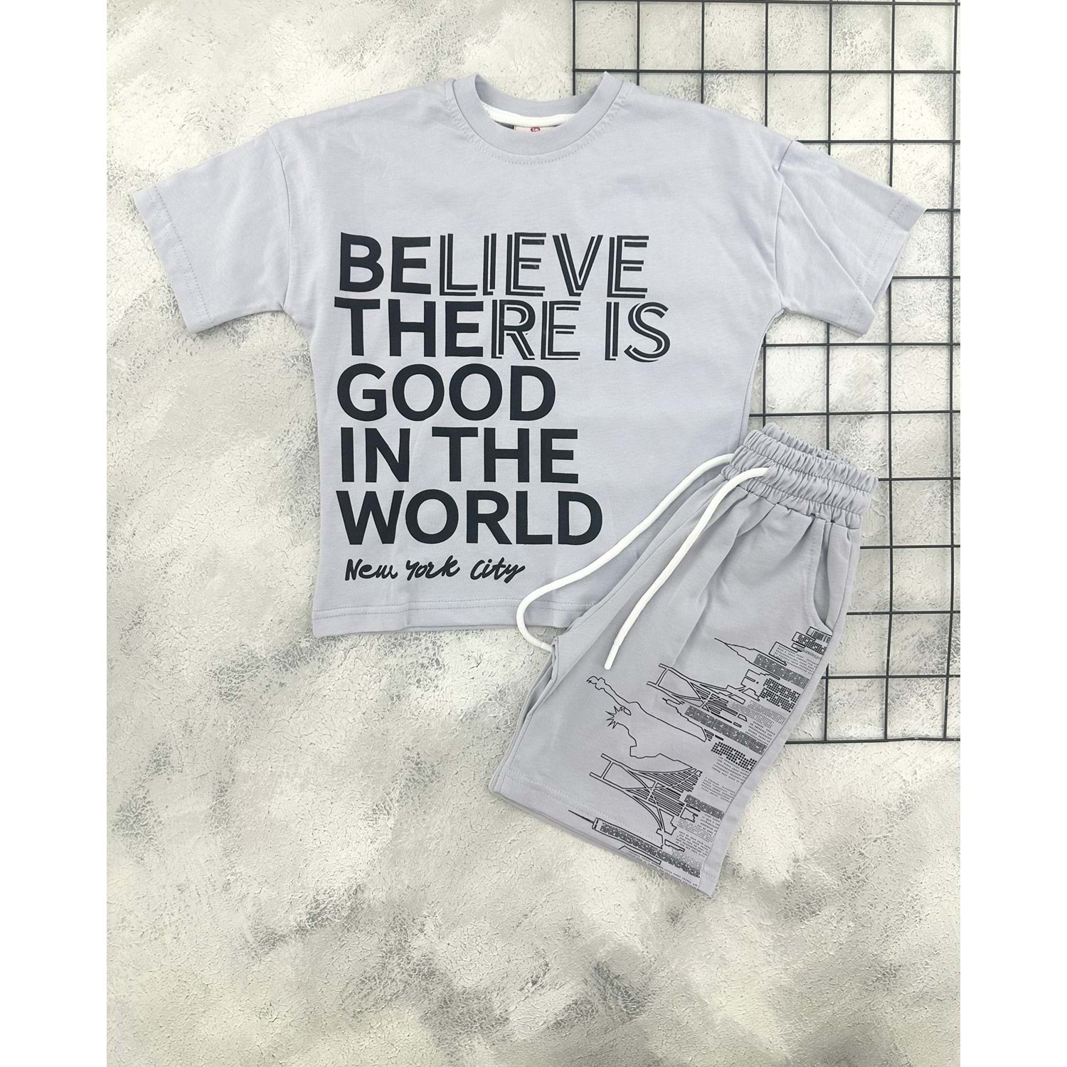 CİCİBOM 2004 YAZI BASKILI ŞORT TAKIM - GRİ - 5-6 YAŞ