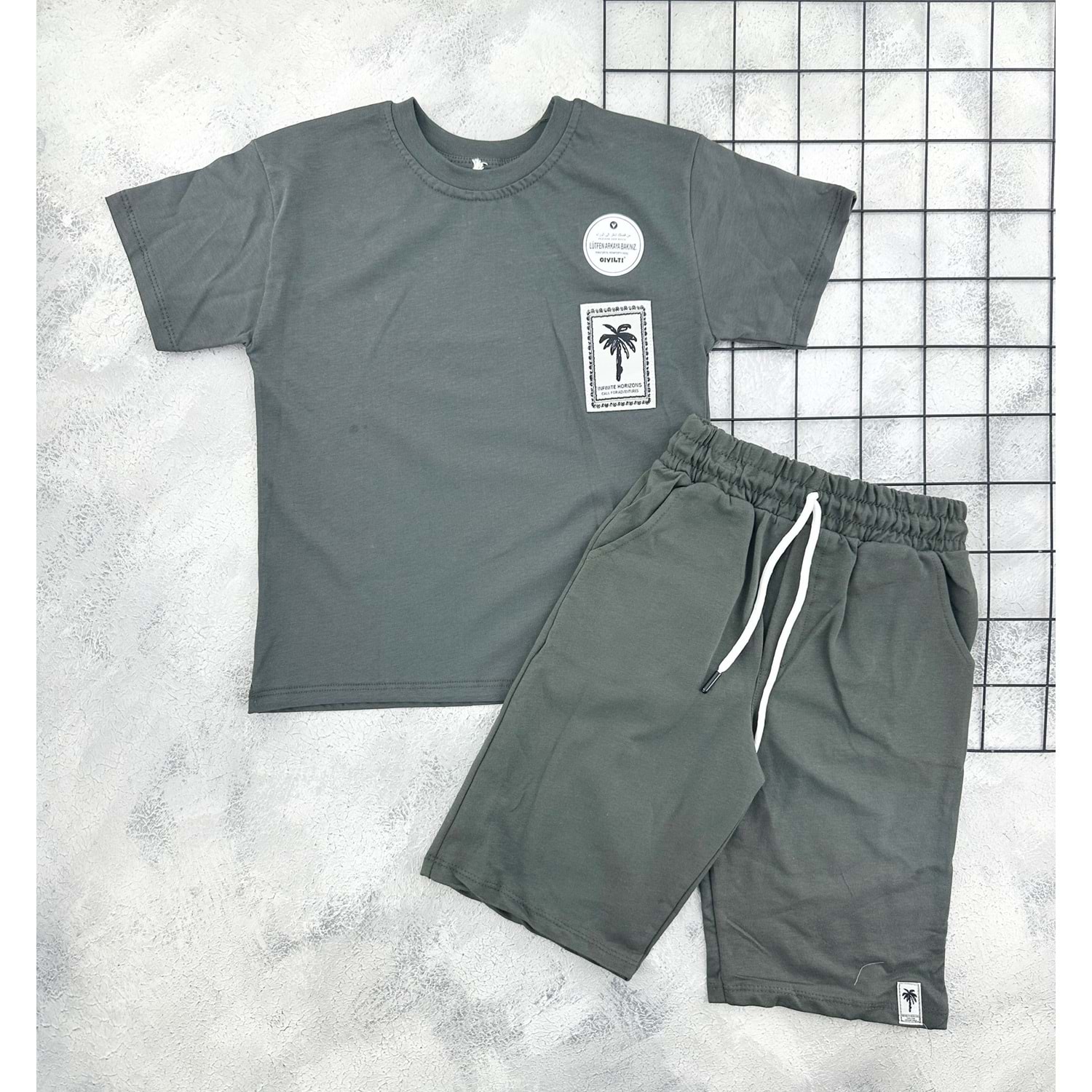 CIVILTI 3540 PALMİYE NAKIŞLI ŞORT TAKIM - YEŞİL - 8-9 YAŞ
