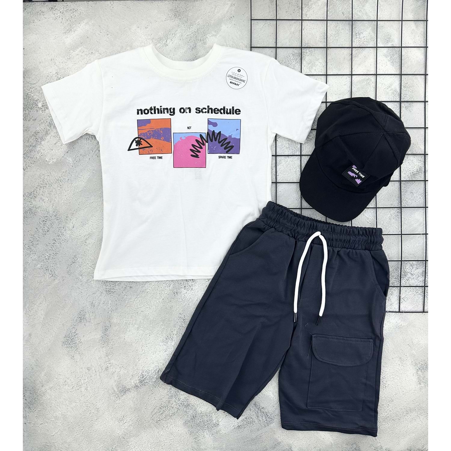 CIVILTI 3557 FREE TİME BASKILI ŞORT TAKIM - KREM - 9-10 YAŞ