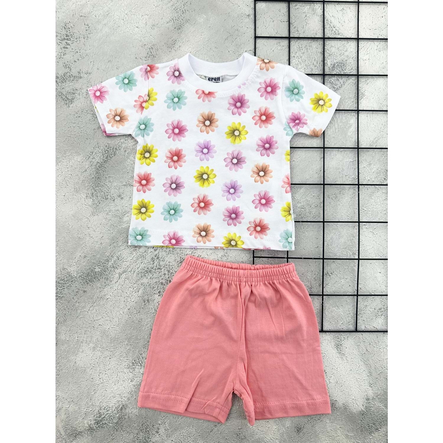 ERN BABY 0105 ÇİÇEK DESEN ŞORT TAKIM - NAR ÇİÇEĞİ - 6 AY