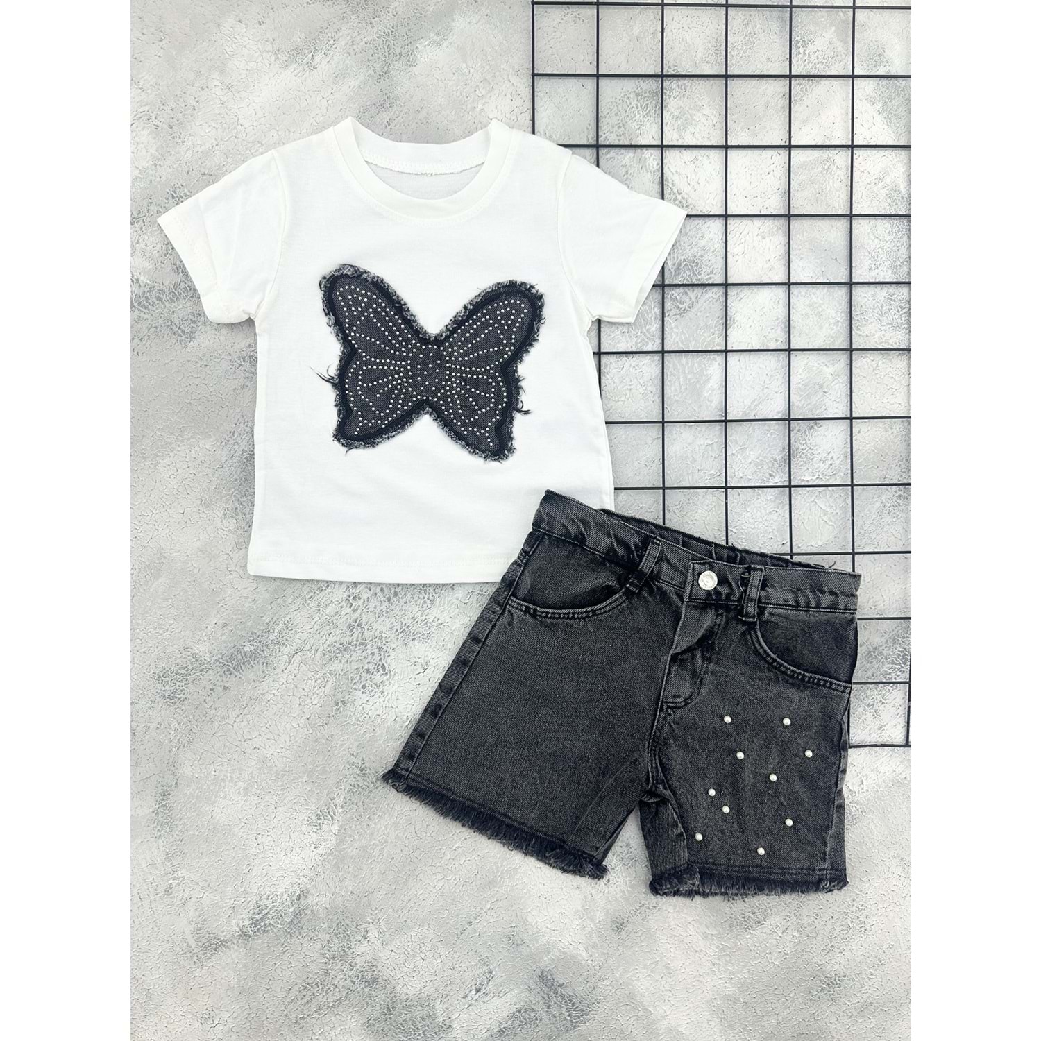 HEROX TAŞLI KELEBEK KOT ŞORT TAKIM- SİYAH - 5 YAŞ