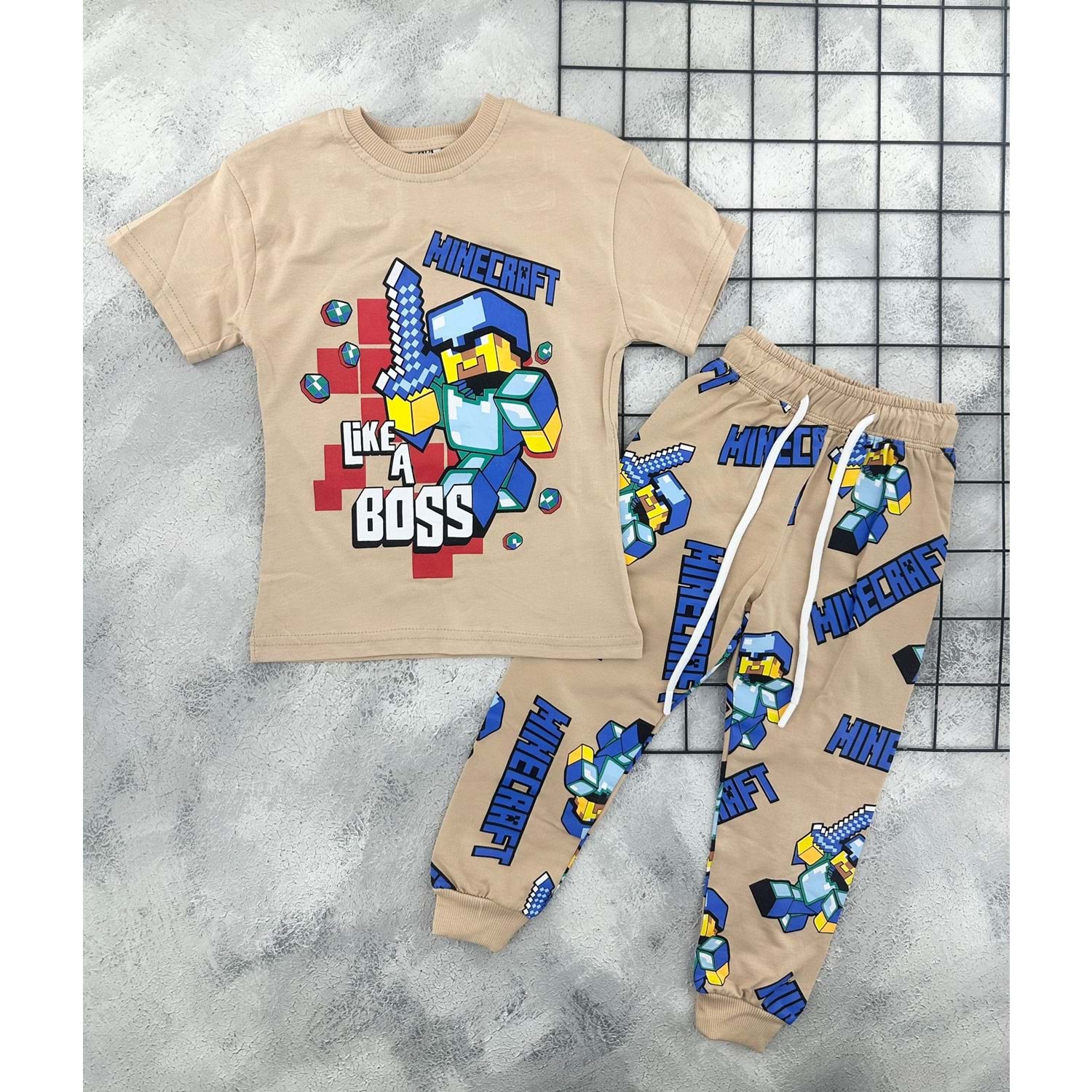 ZR 7023 MİNECRAFT BASKILI TAKIM - BEJ - 3-4 YAŞ