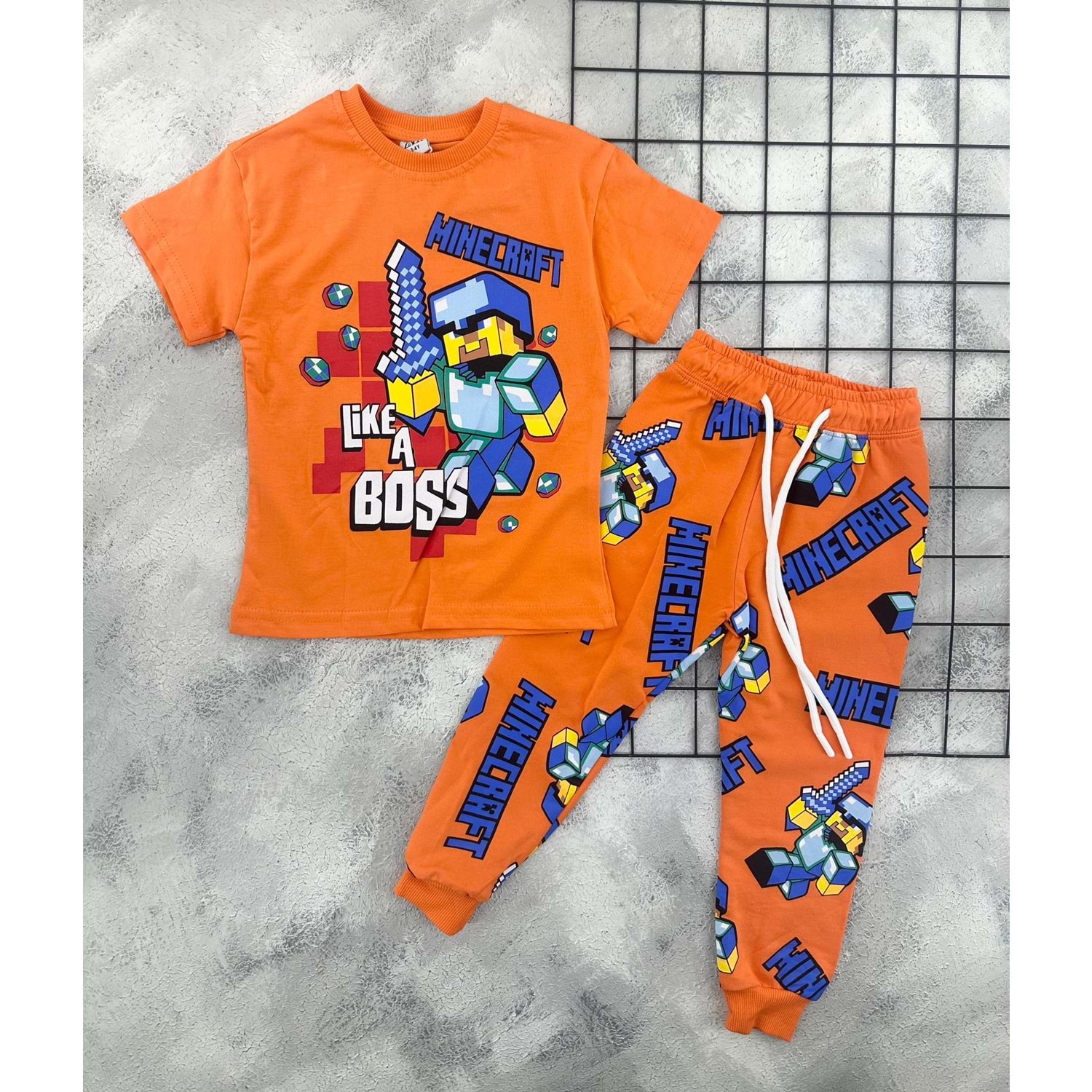 ZR 7023 MİNECRAFT BASKILI TAKIM - TURUNCU - 7-8 YAŞ