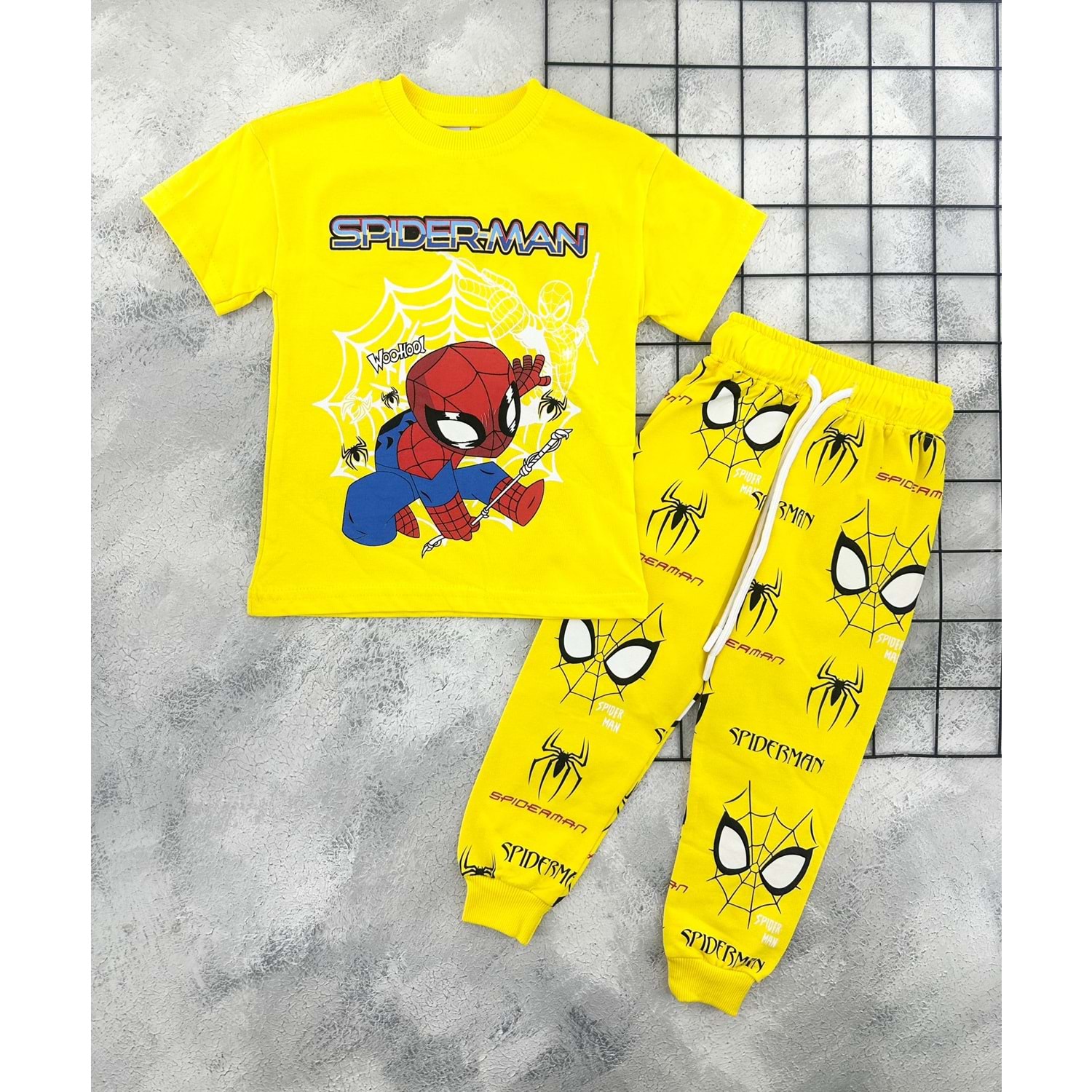 ZR 7025 ÖRÜMCEK ADAM BASKILI TAKIM (3-8 YAŞ) - SARI - 7-8 YAŞ