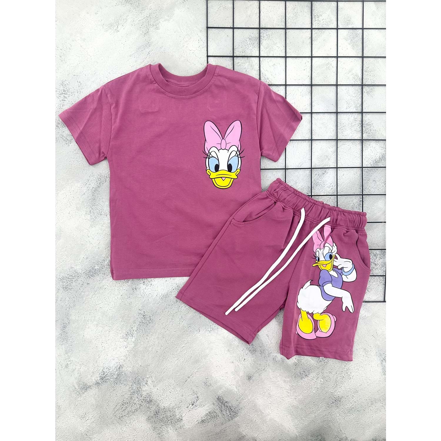 ZR 7031 DAİSY DUCK BASKILI ŞORT TAKIM - MÜRDÜM - 4-5 YAŞ