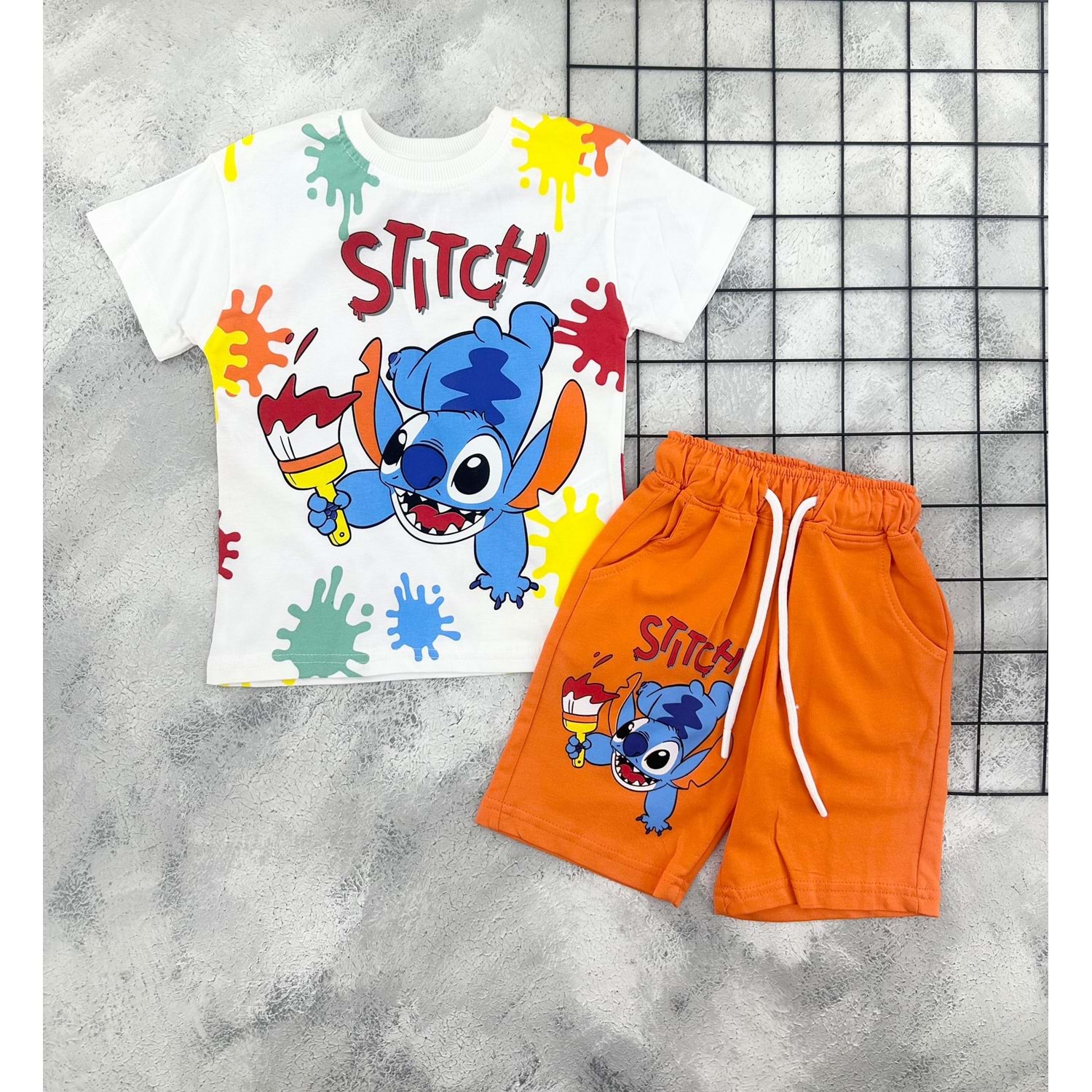 ZR 7032 STİTCH BASKILI ŞORT TAKIM - TURUNCU - 5-6 YAŞ