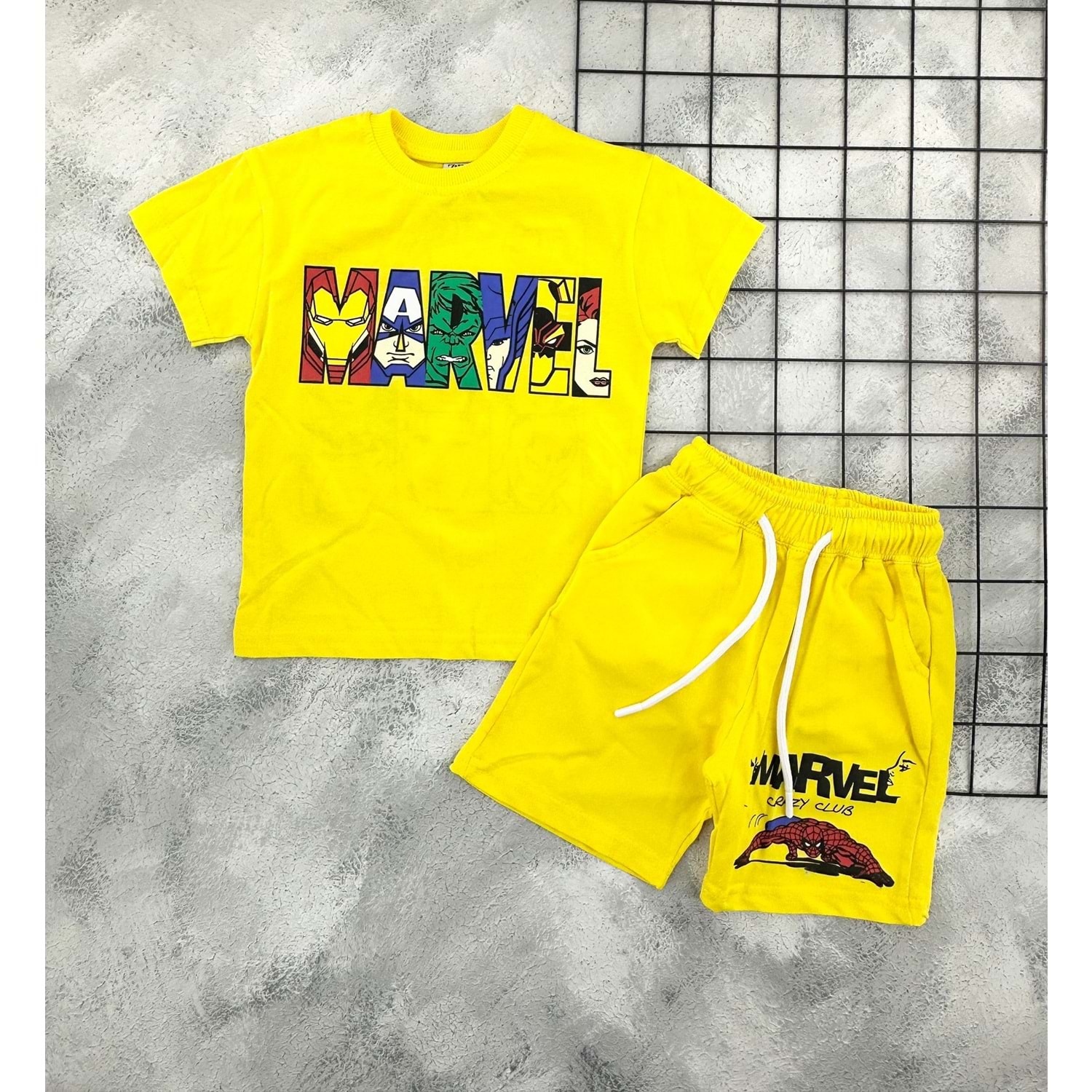 ZR 7035 MARVEL BASKILI ŞORT TAKIM - SARI - 6-7 YAŞ