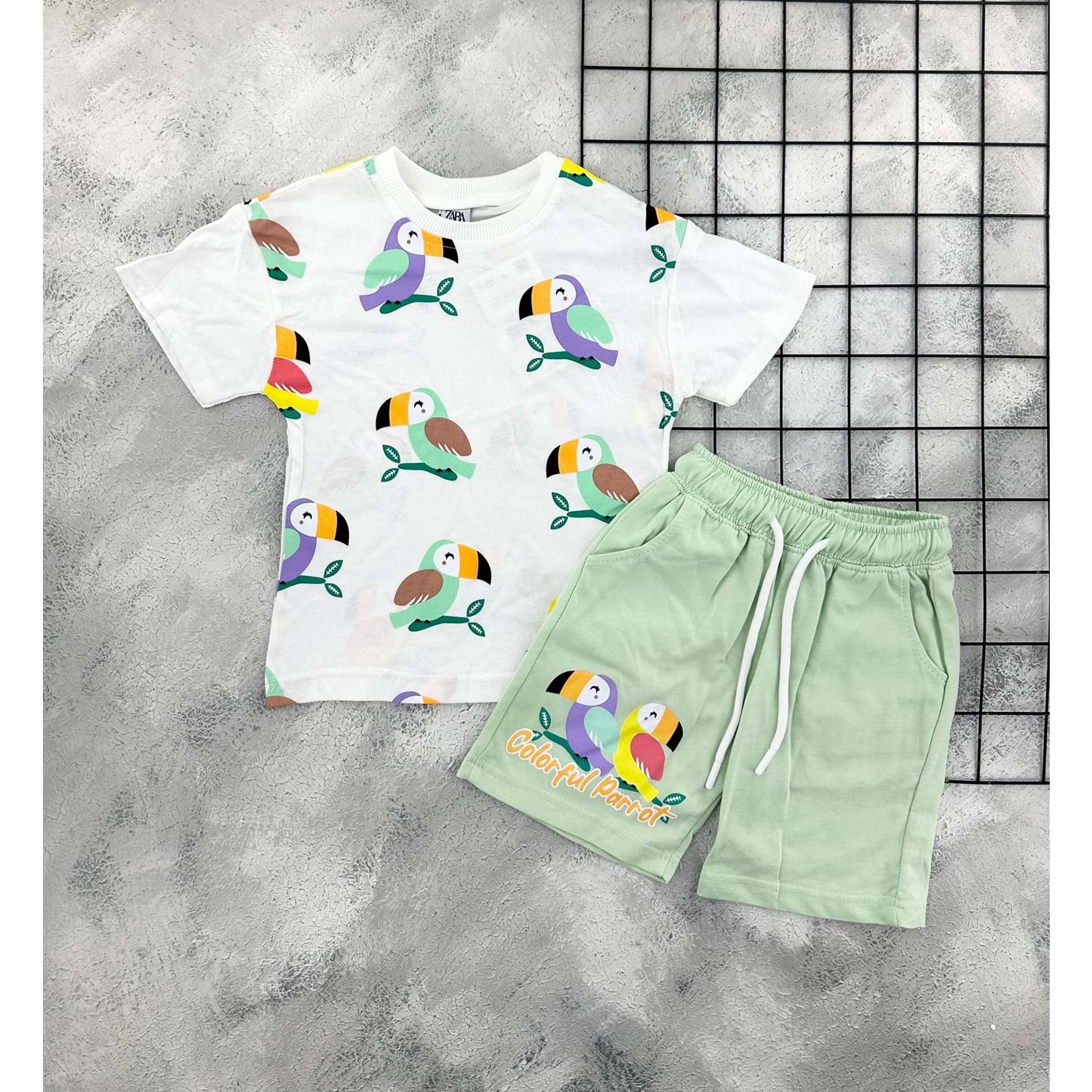 ZR 7041 KUŞ BASKILI ŞORT TAKIM - MİND - 7-8 YAŞ