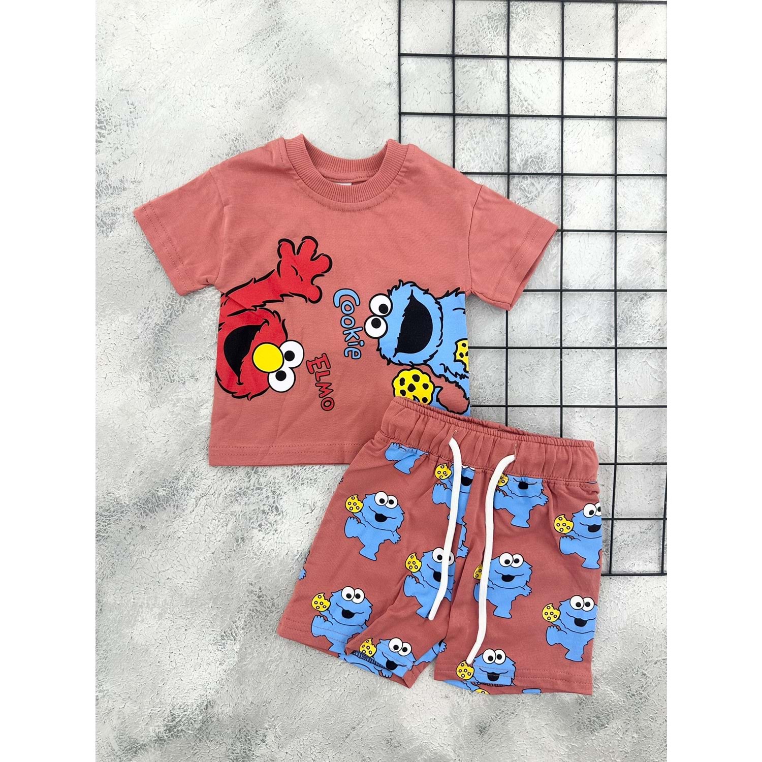 ZR 7047 ELMO&COOKİE BASKILI ŞORT TAKIM - KİREMİT - 9 AY