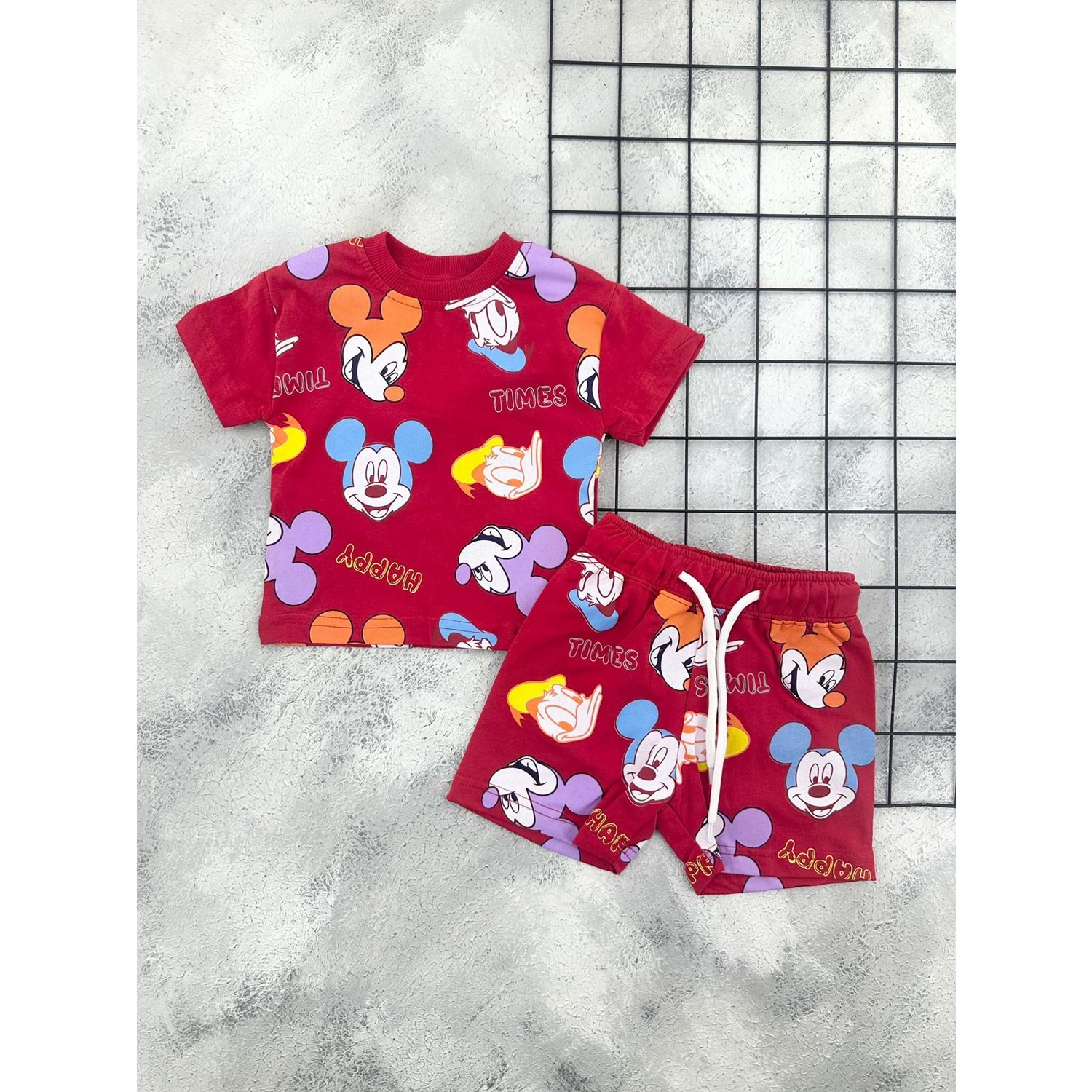 ZR 7048 MİCKEY DONALD KAFA ŞORT TAKIM - KIRMIZI - 6 AY