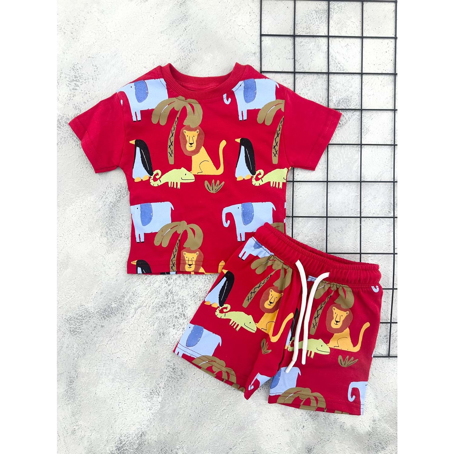 ZR 7051 HAYVAN BASKILI ŞORT TAKIM - KIRMIZI - 6 AY