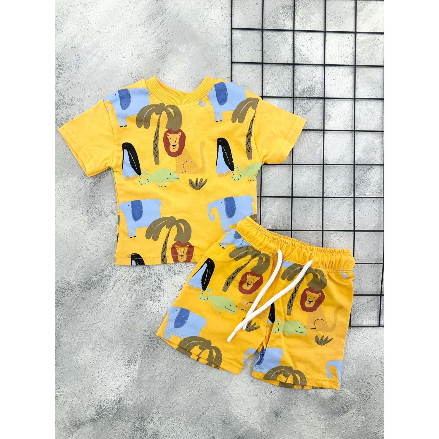 ZR 7051 HAYVAN BASKILI ŞORT TAKIM - SARI - 24 AY