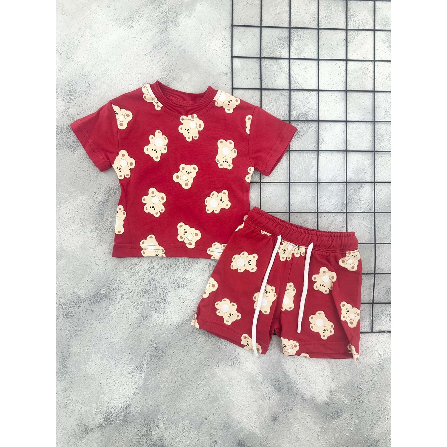 ZR 7053 AYICIK BASKILI ŞORT TAKIM - KIRMIZI - 6 AY